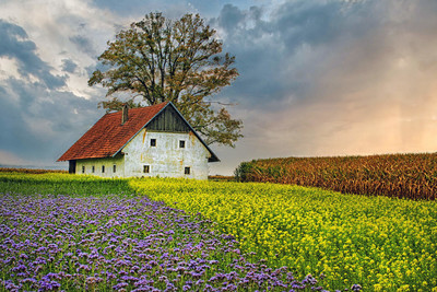 Süddeutsche Bauerntoskana . So schön kann Flurbereinigung sein. Mit Kontraste und Farben so gearbeitet das das eine unscheinbare Landschaft zum Eyecatcher wird.