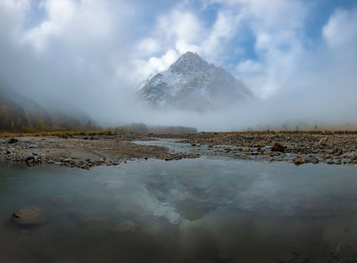 Foggy morning in mountains