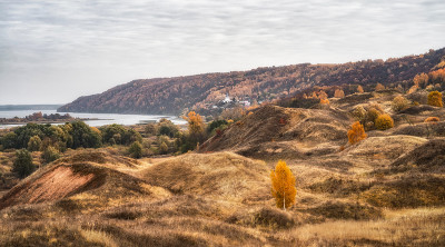 The ravines are like velvet, and in the distance you can see the church temple majestically.