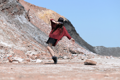 The girl should have stood on this stone, since there is no ball nearby.