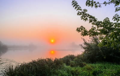 Beautiful sun in the fog with reflection!