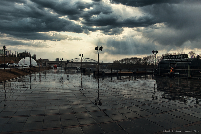 Rainy embankment by the river