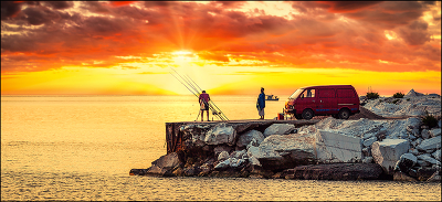 Fishing, sunrise