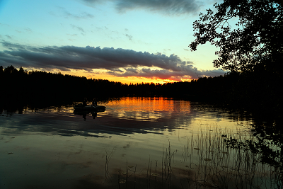 On the evening sunset