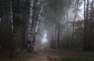 In the dense fog
