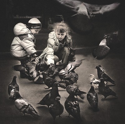 Children and pigeons