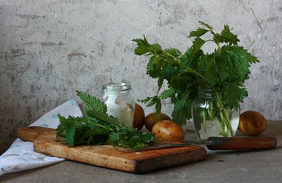 Cooking nettle soup.