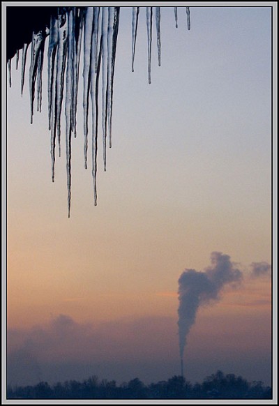 Winter, icicles, the smoke column ...