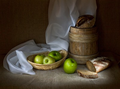 etude with green apples