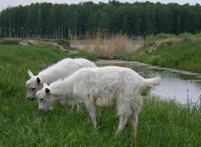Goats graze on the meadow
