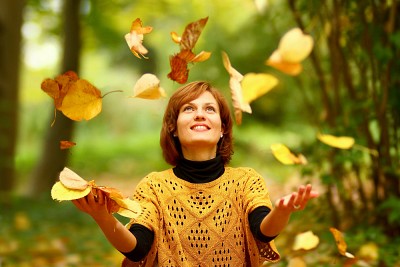 Playing with leaves