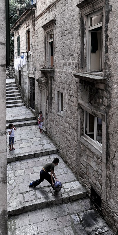 Amid the narrow streets