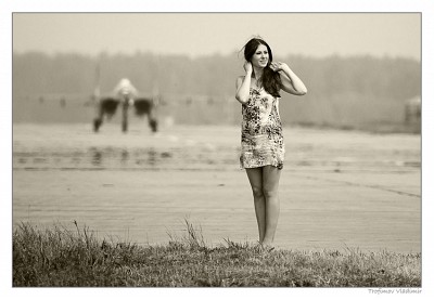 Sky, airplane, girl