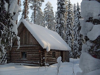In the forest on the edge of the winter living in a hut ...