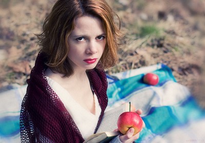 Picnic for two: she and the book.