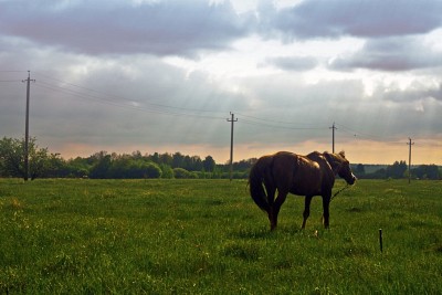 Horse in village