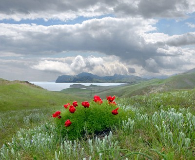 Spring flowers on a hill rose