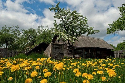 Splendid photo. I like this shot of the old building and the field of dandelions. Wonderful