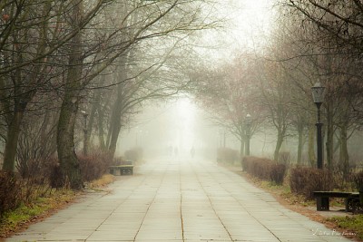Autumn and foggy Broadway