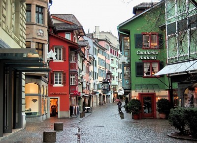 Lite rain on the streets of Zurich.