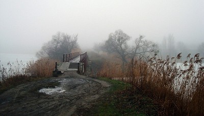 The bridge in the misty distance