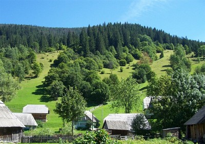at the foot of the mountains