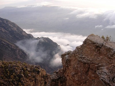 Standing on the ground, and clouds below