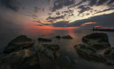 Purple glow over the bay