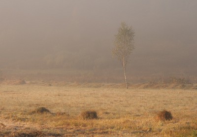 In the morning mist.