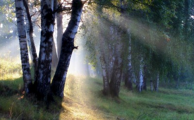 Morning in birch forest