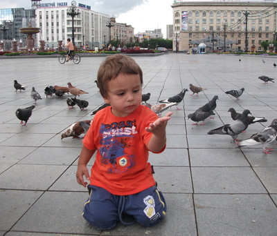 Boy and pigeons