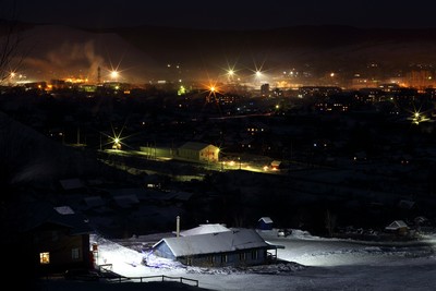 Obluchye village on Christmas night