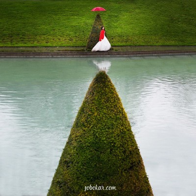 Bride and red umbrella