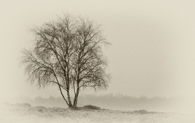Ein Baum in der Westruper Heide im RETRO STIL.