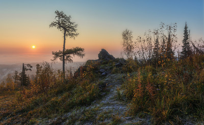 Foggy sunrise