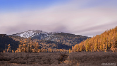 Untitled Genghis Khan (also known as Chinggis Khan) lost his battle against the Merkit (one of the major tribal confederations (khanlig) of the Mongols) and escaped death by seeking protection in the sacred precincts of the Burkhan Khaldun mountains. An old woman saved him and a few others. As mark of great reverence to the mountain, which in Mongolia is considered a highly sacred mountain of spiritual significance, and to the sun above, he offered his respects to the spirits of the mountain around him, sprayed milk into the air and sprinkled it on the earth. He removed his girdle strap, unwinding it from his outfit, and then put it around his neck. https://en.wikipedia.org/wiki/Burkhan_Khaldun |