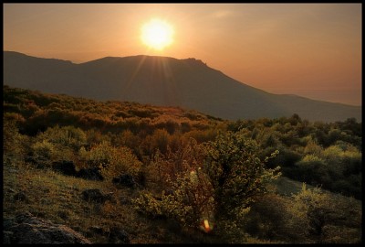 Crimea. Dawn over Demerdzhi.