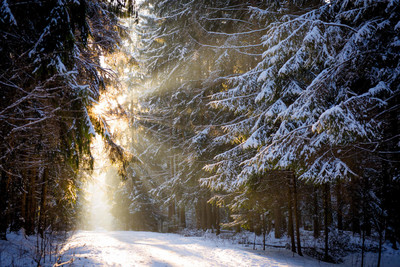 The sun in the winter forest