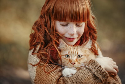 What a lovely couple. Wonderful colours and I love the adoring glance by Lisa who is a girl at the cat which is called Ryzhik. Such a beautiful scene.