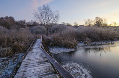 The old colorful bridge with hoarfrost fits well!
