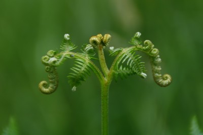 Fern sprout centered and focus on foreground on green background