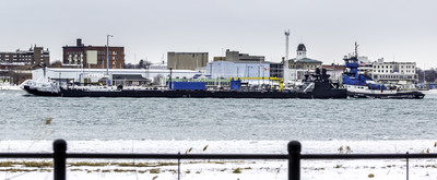 this barge was heading downriver under the power of a tug