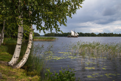 The photo was impressive! White birch trunks bent like sails in pursuit of a sailing boat!
