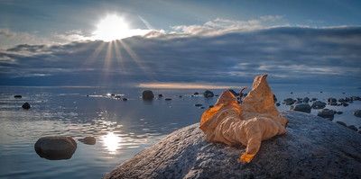 Dinosaur sees off the sun