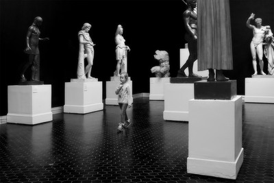 She walks as if afraid to attract the attention of these important sculptures. ) Great photo!