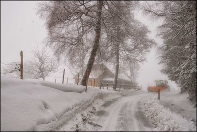 Nebel und Schnee.
