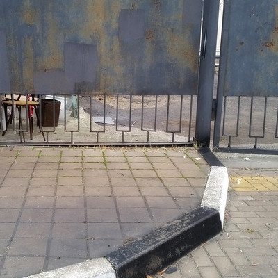 The border rests against the fence, and beyond the fence there is a continuous homeless business!