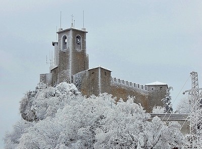 Super! There is such beauty in San Marino! Fabulously beautiful! Now they know how it happens. Cool frost decorated the tower itself!