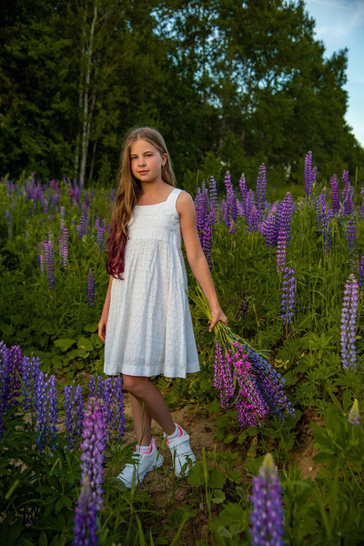 Girl with lupins .... Portrait in lilac ... flowers! Cool!