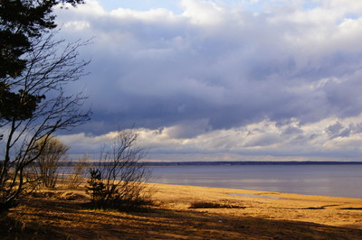 A beautiful combination of dark blue clouds and sunny yellow shore
